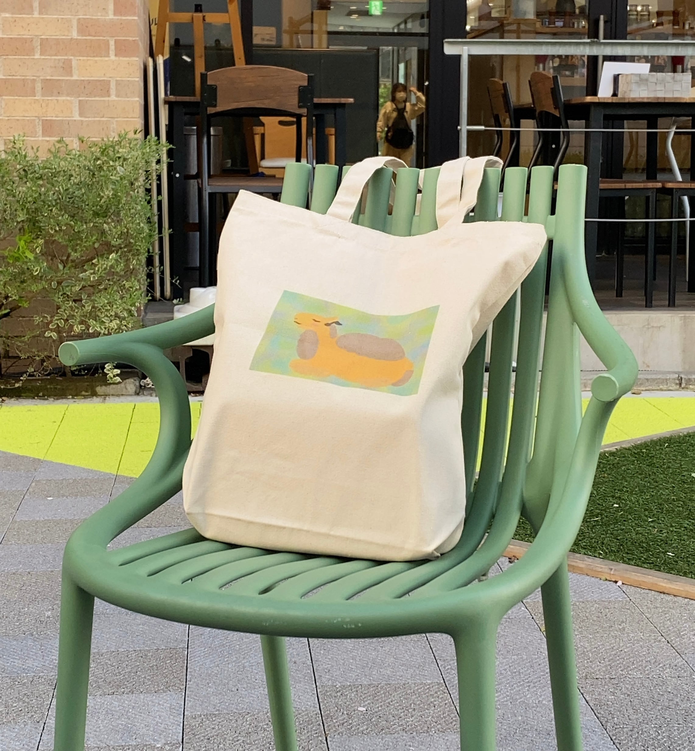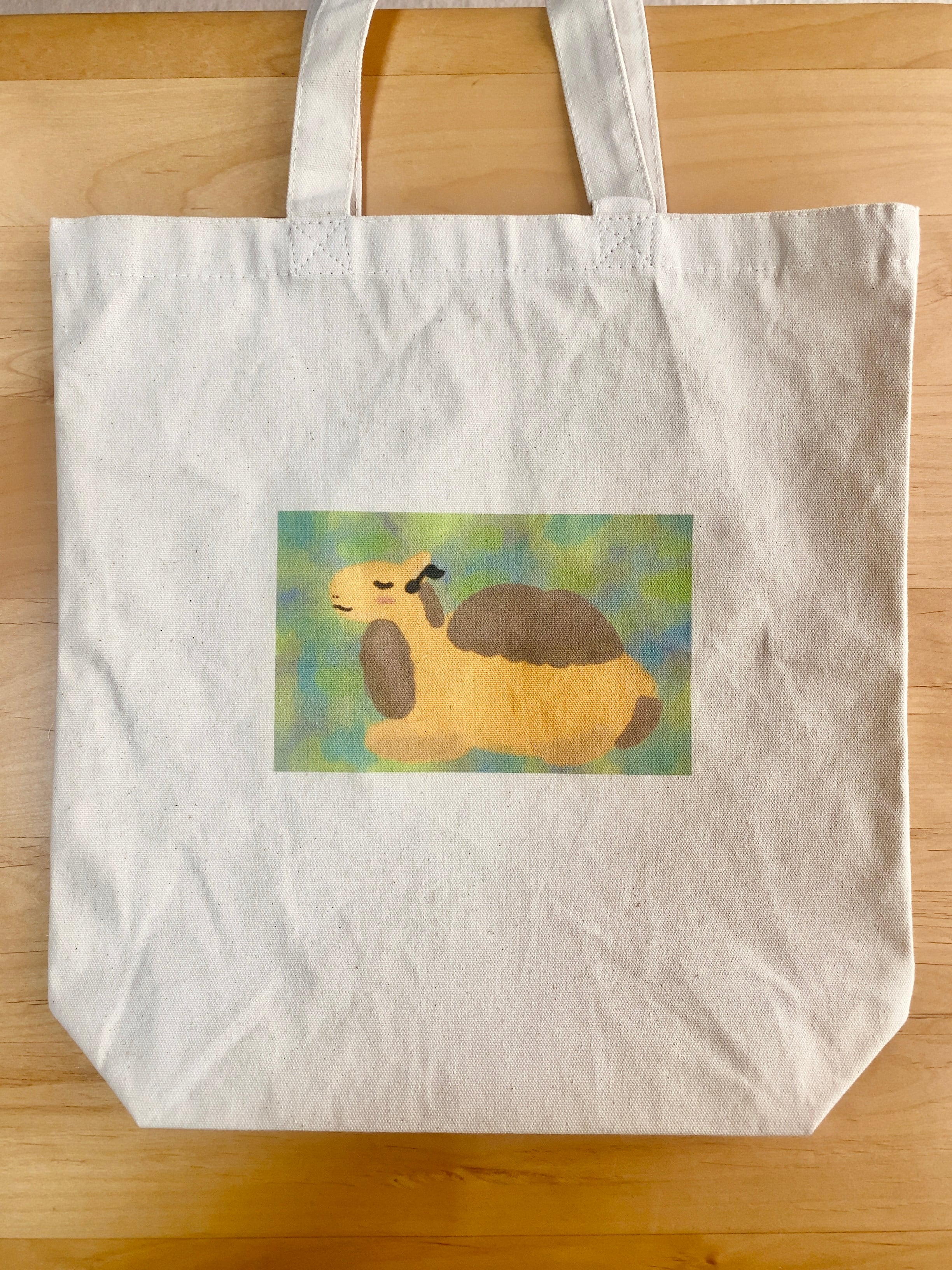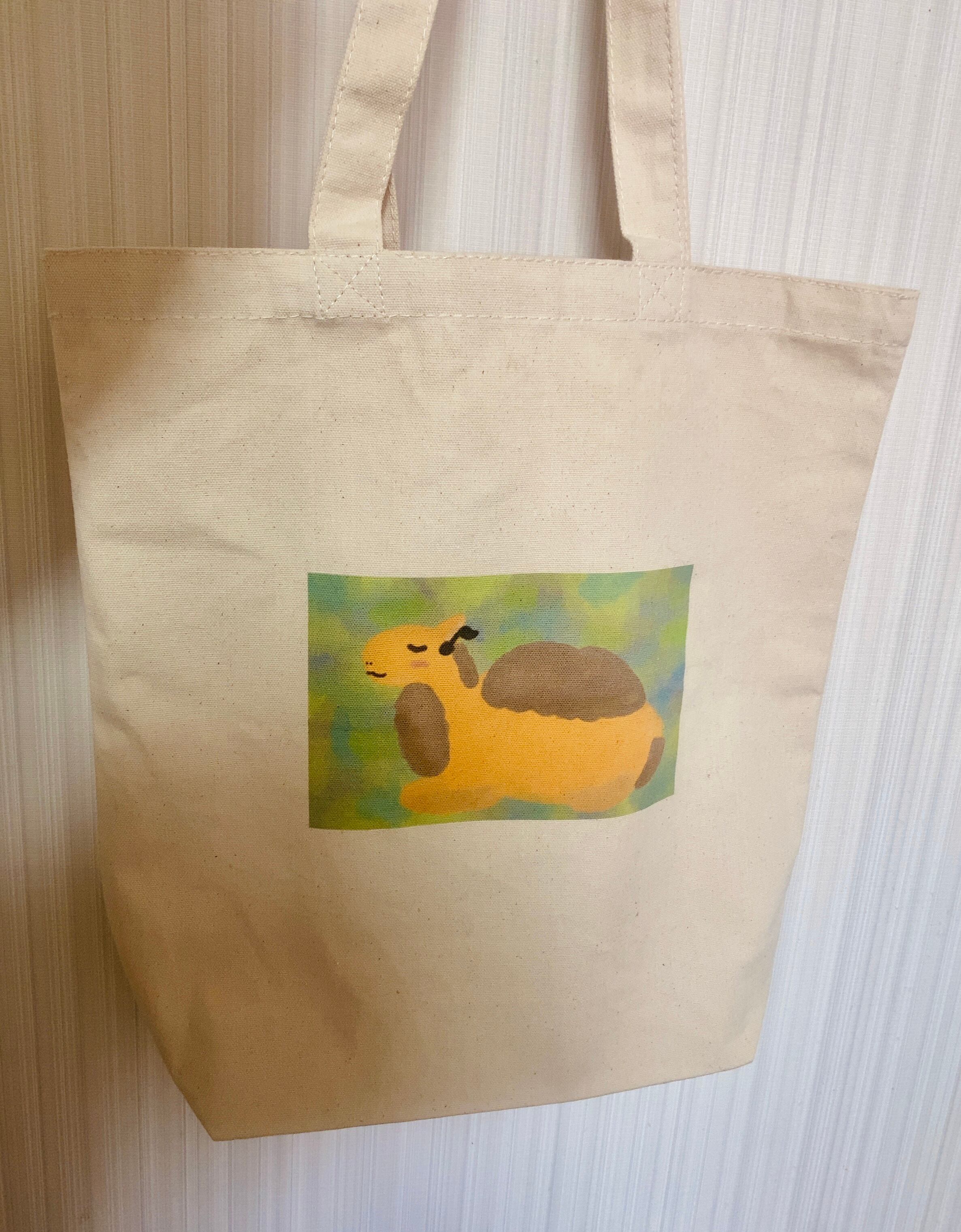 販売中のZINE「らくだの楽多さん」に出てくるメインキャラクター「楽多さん」がプリントされたキャンバストートバッグです。