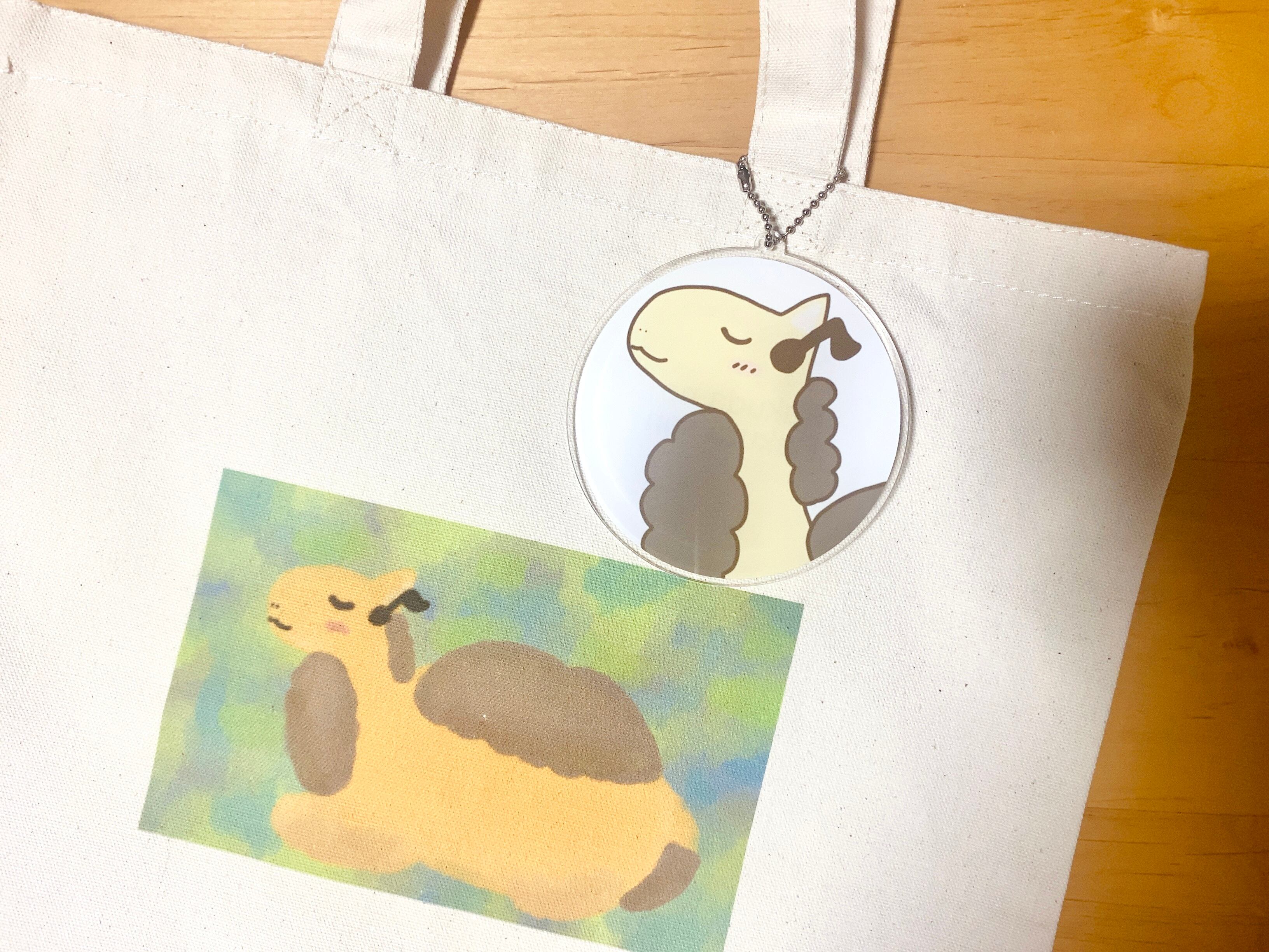 【グッズセット】楽多さんトートバッグと楽多さん大きめキーホルダーのセット商品です。
